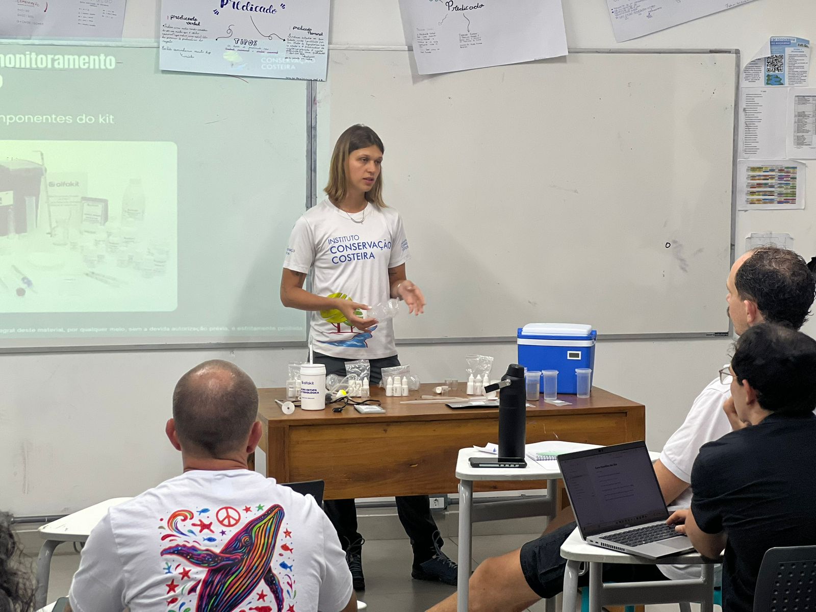 O curso foi realizado em dois encontros: online, no dia 29 de outubro, e presencial, no dia 5 de novembro, no IEC Raízes, em Boiçucanga. A formação integrou atividades teóricas e práticas sobre monitoramento participativo da água, legislação ambiental, saneamento e boas práticas de gestão hídrica.